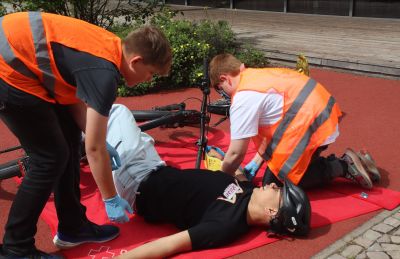 Unser Schulsanitätsdienst entlastet Lehrkräfte, beruhigt Eltern, hilft Schülern und bildet über das so wichtige Thema „Erste Hilfe“ aus.